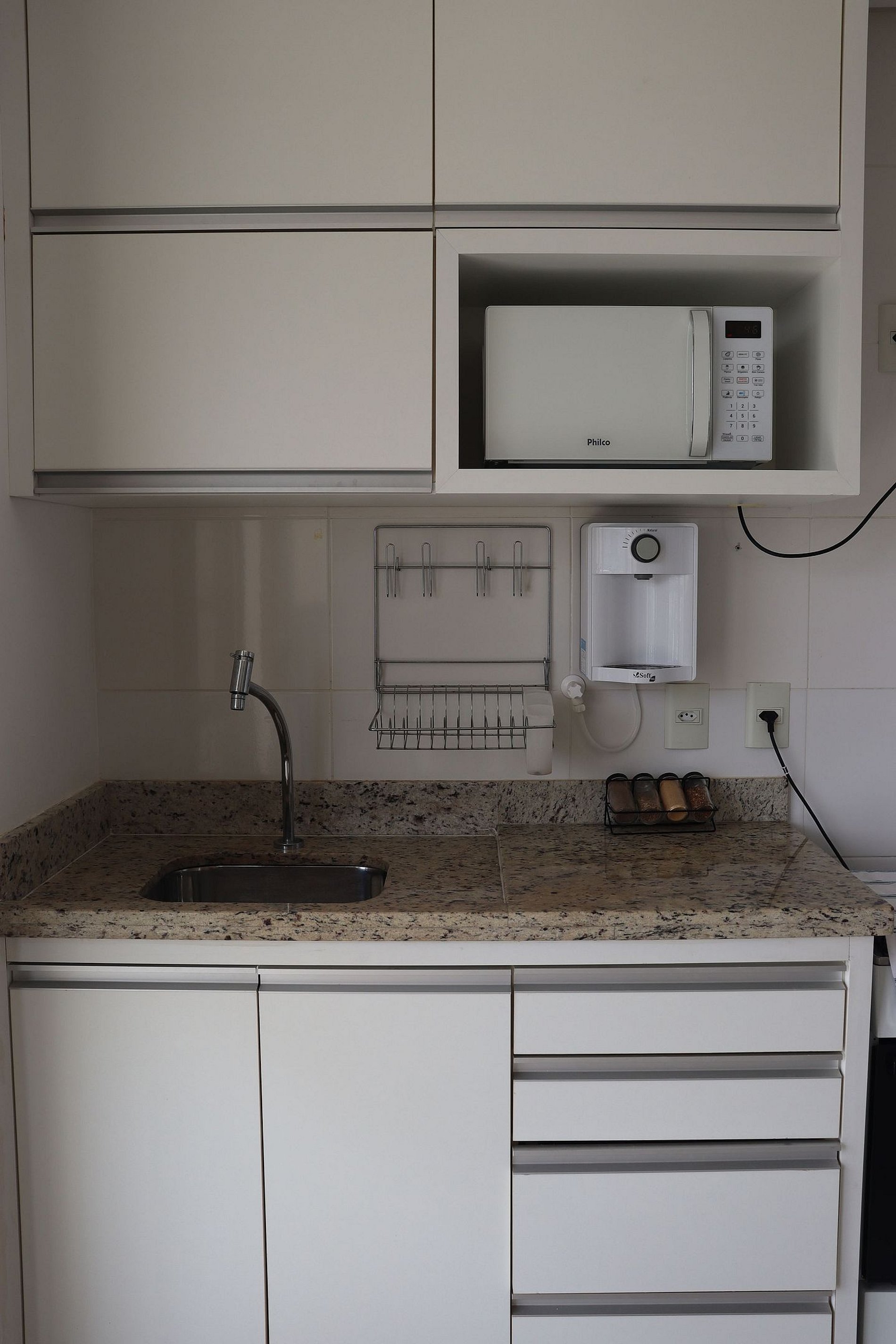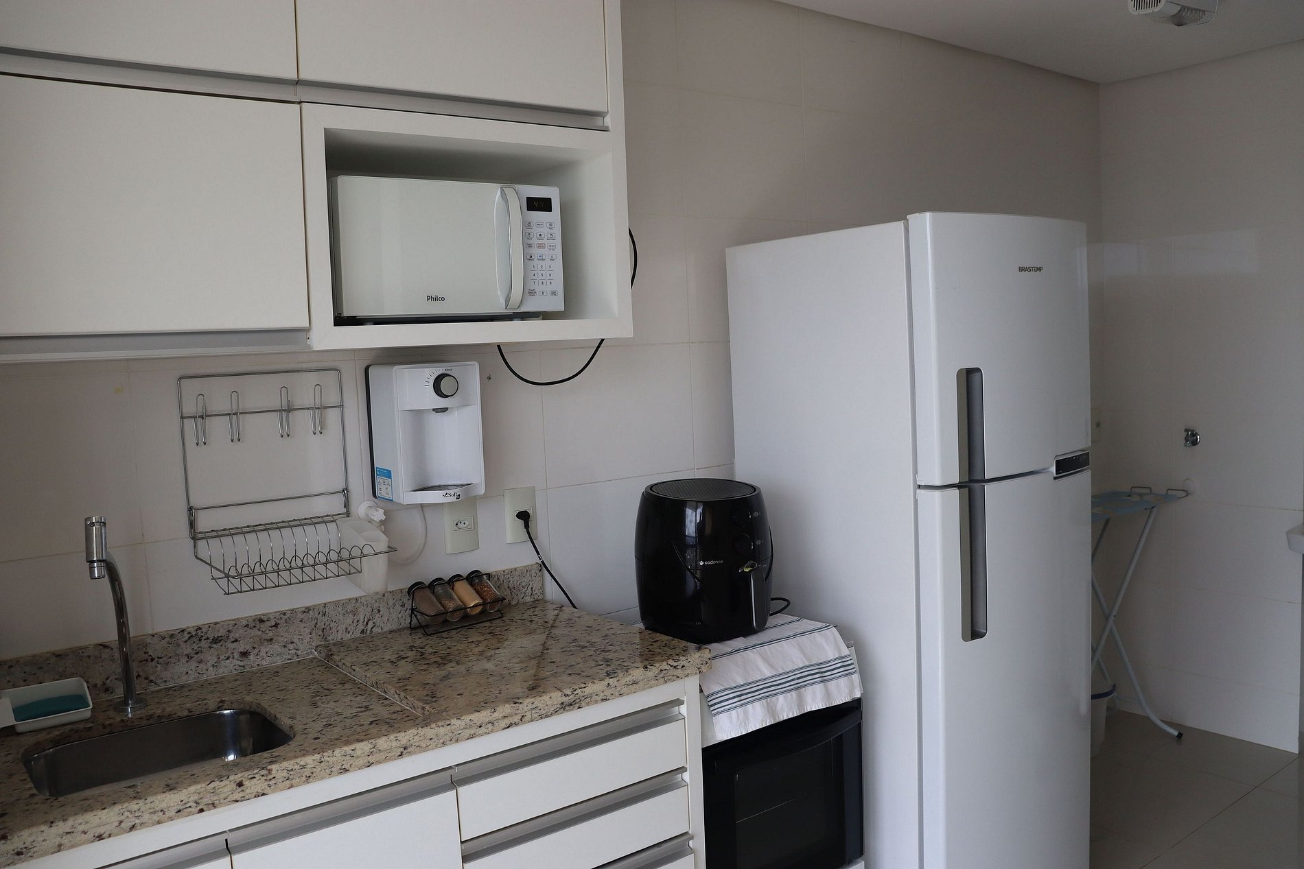 Sala de estar: • Ventilador • Smart TV de 55” polegadas • Wi-Fi • Mesa de jantar para 04 pessoas • Sofá que se transforma em cama de casal Cozinha completa: • Purificador de água • Fogão • Geladeira • Micro-ondas • Air fryer, liquidificador, sanduicheira e diversos utensílios para facilitar sua estadia. Quarto: • Ar condicionado • Uma cama de casal • Guarda-roupas • Mesa de cabeceira • Roupas de cama e toalhas Banheiro • Completo com chuveiro elétrico. Sacada: • Vista panorâmica da cidade, perfeita para contemplar o nascer do sol.
