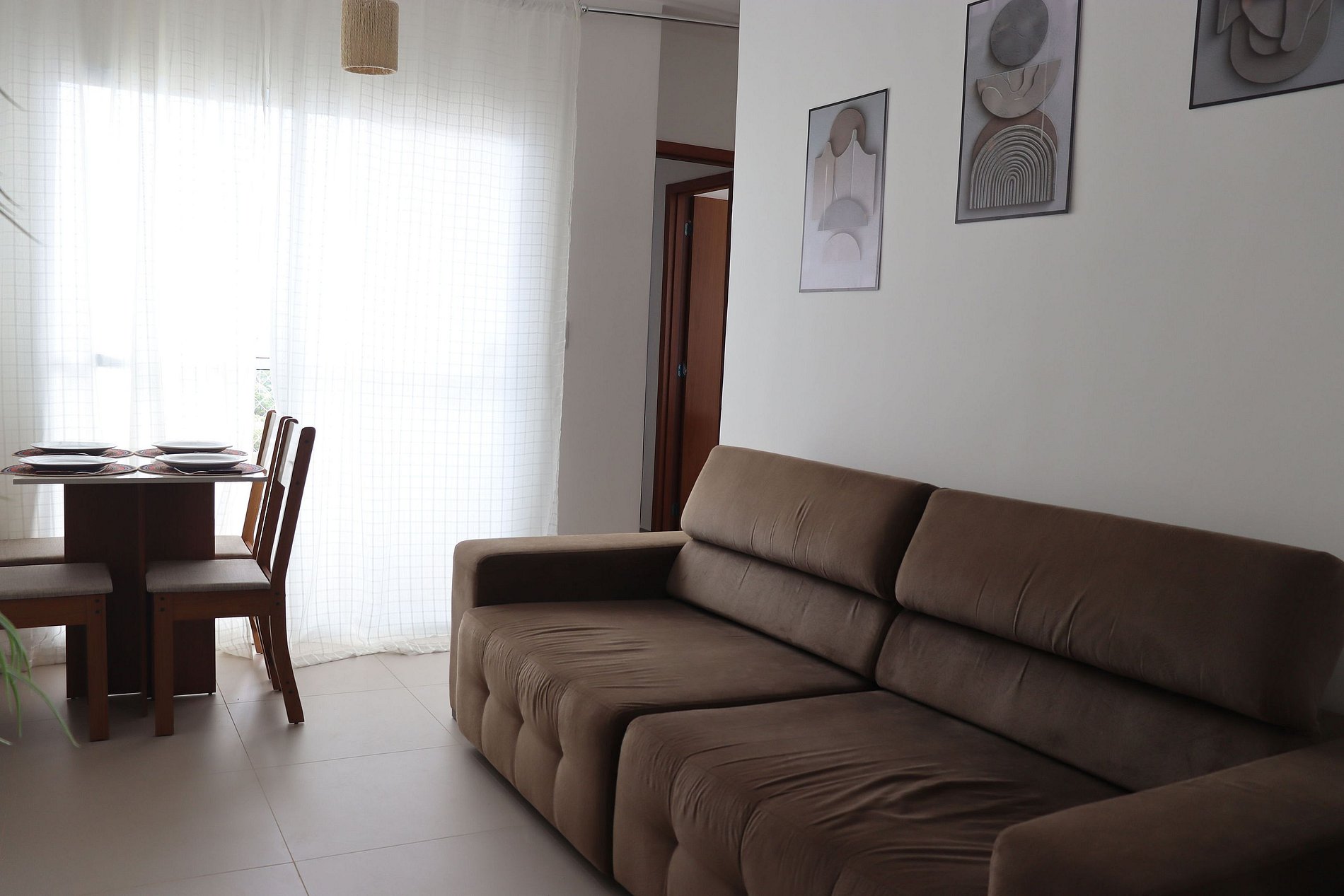 Sala de estar e jantar integradas, proporcionando um ambiente amplo e agradável.
