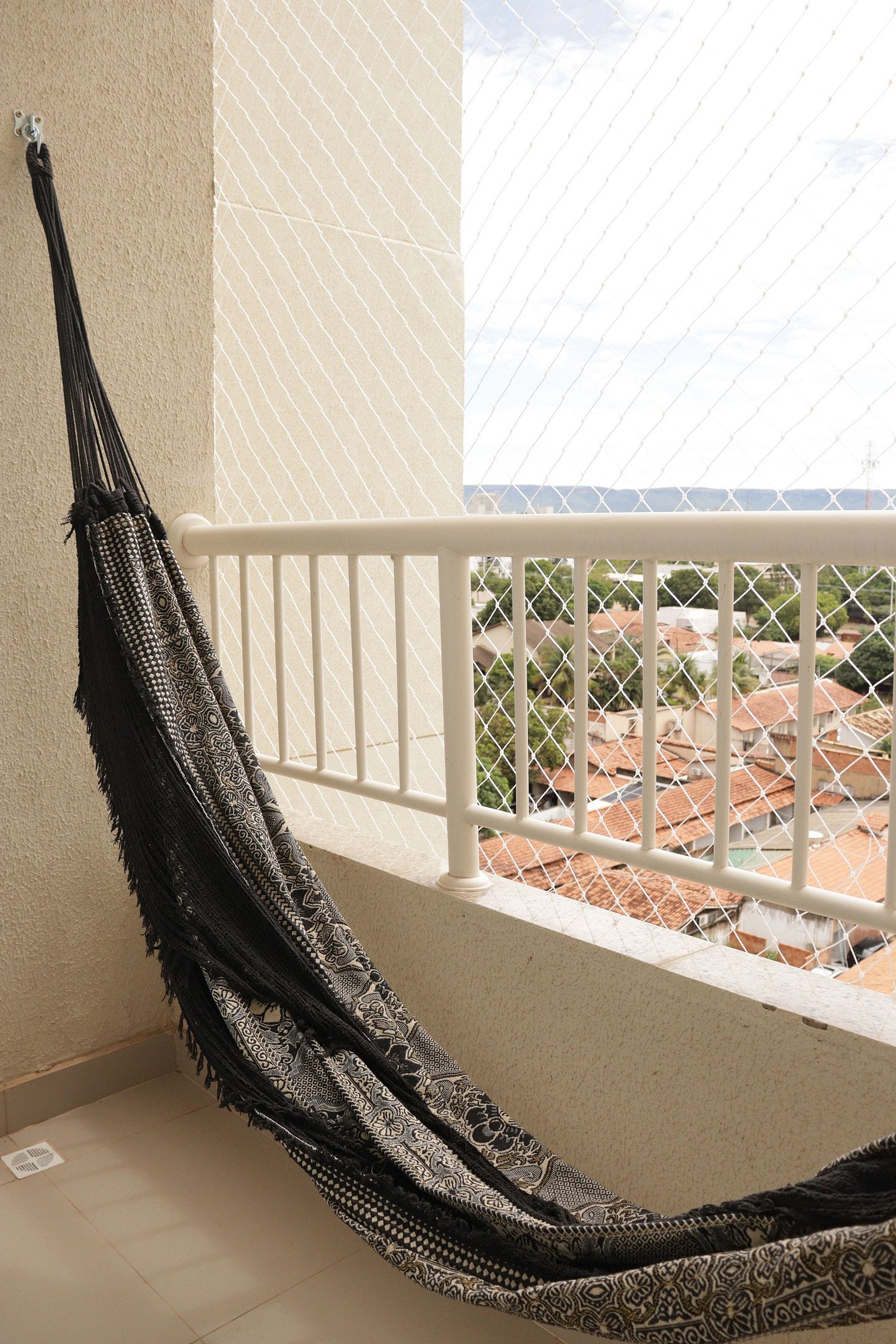 Varanda com vista para a cidade, perfeita para relaxar.